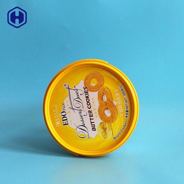 El cubo poner crema de la galleta IML modifica el empaquetado vacío redondo amarillo del envase para requisitos particulares de plástico
