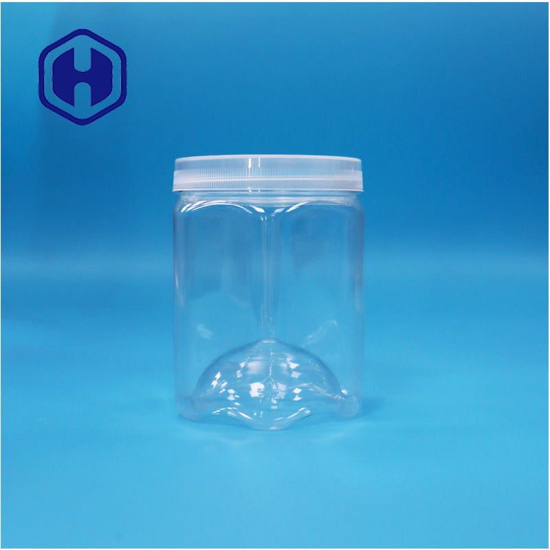 Jarrón de galletas de azúcar de plástico PET cuadrado transparente con tapa de tornillo
