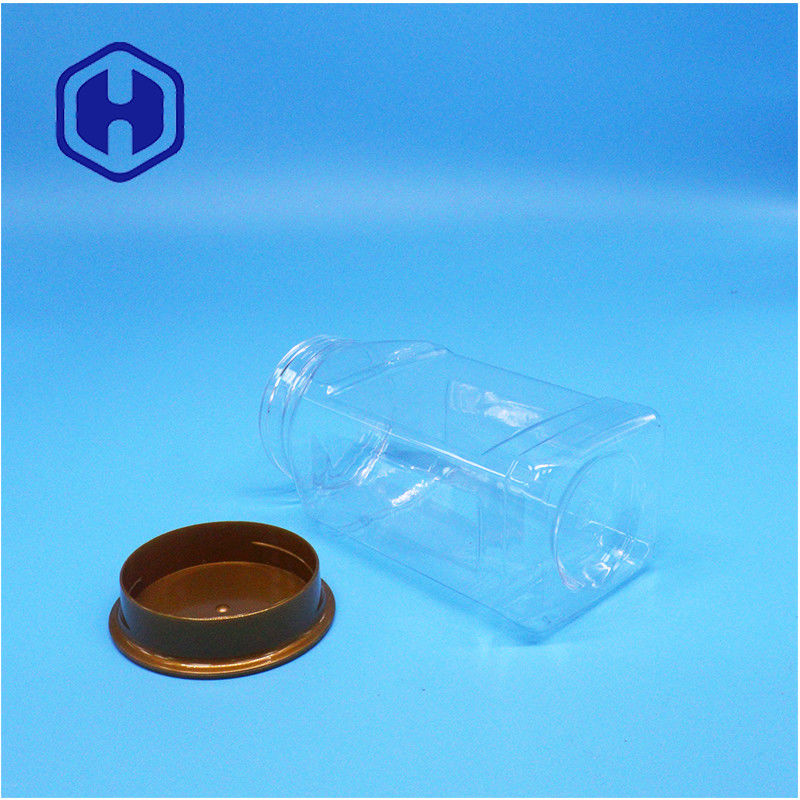 Cuadrado en forma de plástico transparente mantequilla de maní Pimienta nueces galletas frascos de tornillo tapa superior