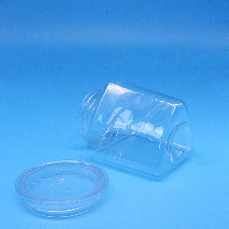 Calidad alimenticia galleta alimenticia caramelo triángulo forma PET plástico transparente Jar tapa clara