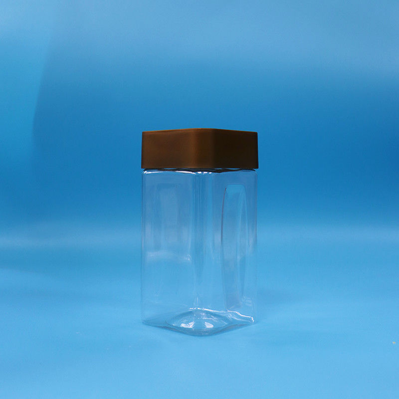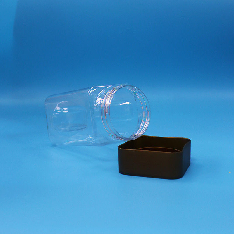 1Jarrones de plástico PET transparentes y cuadrados al por mayor con opciones de doble sellado