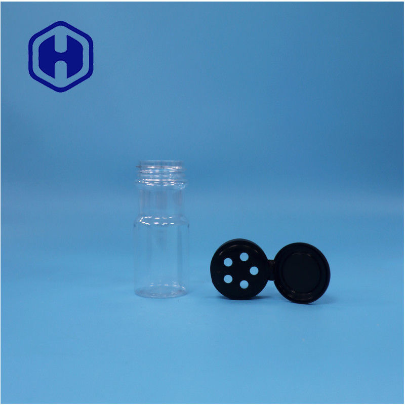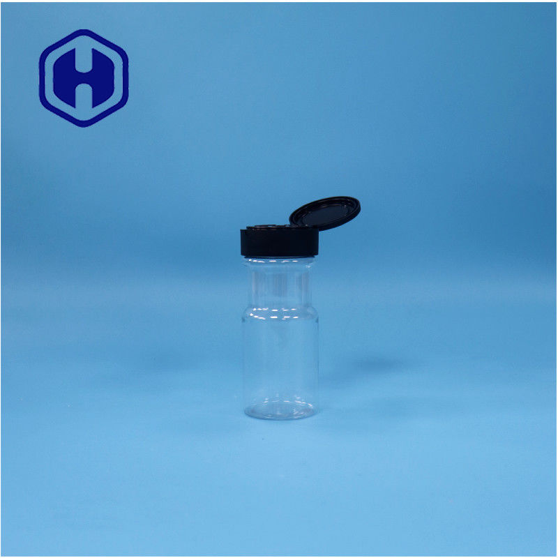 Especias de plástico transparente sal pimienta negra polvo albahaca PET Jar Flip Top Cap