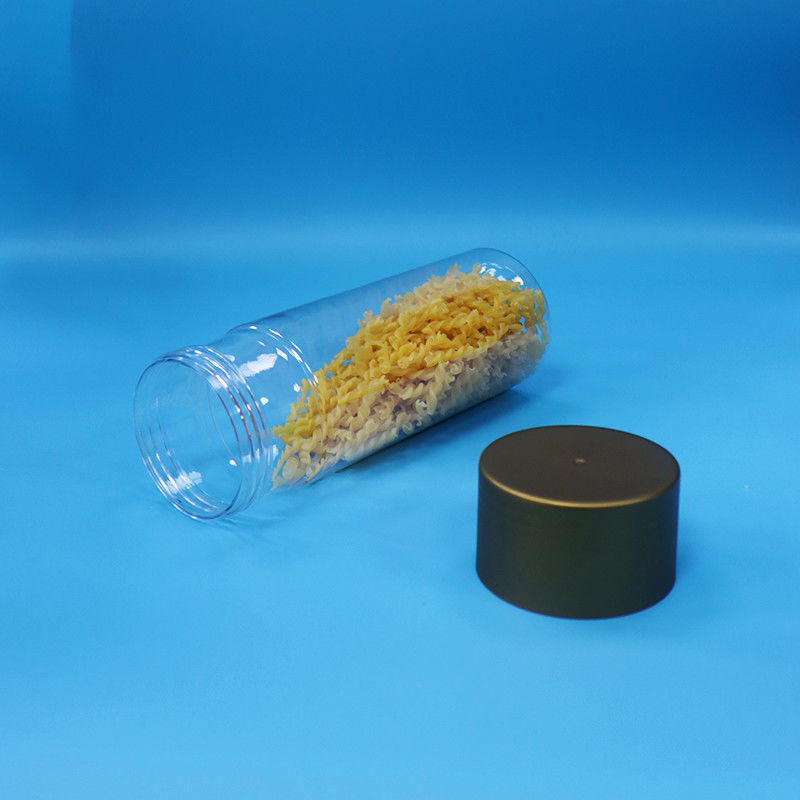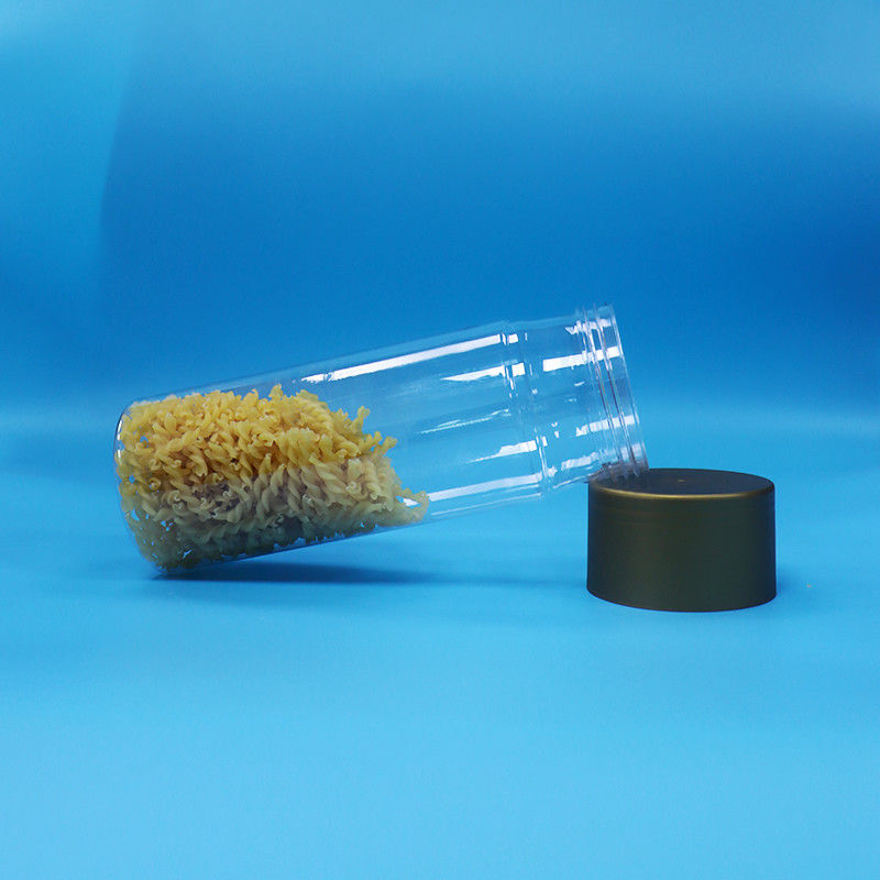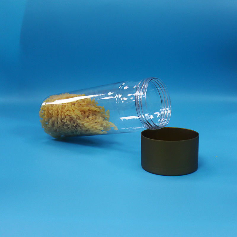 Perdigones de plástico PET transparentes, nueces, dulces, cilindros altos, frascos redondos, tapas de tornillo