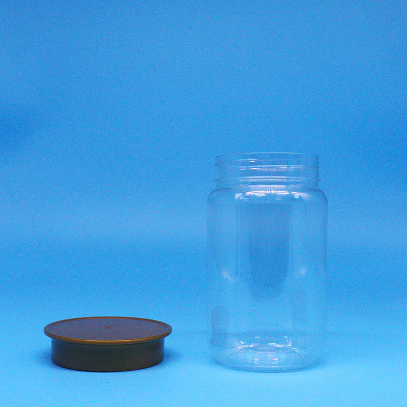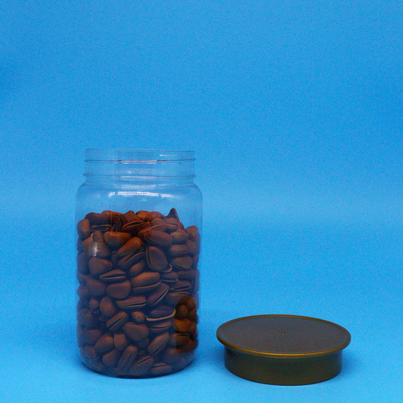 1Jarrón redondo de plástico PET transparente para alimentos con doble sellado