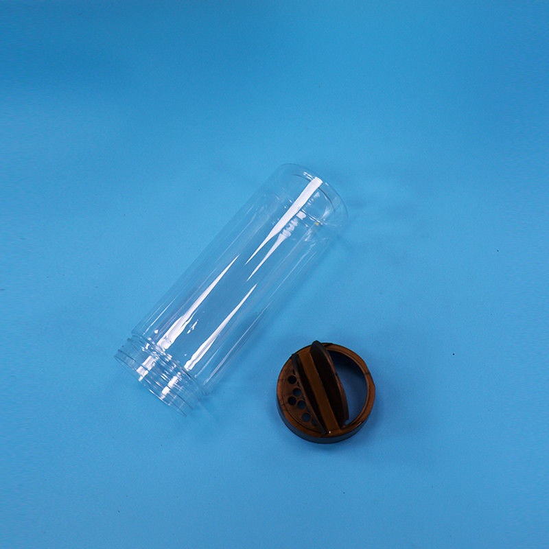 Plastico PET boca ancha redonda transparente Jarrones de especias filtro tapas pimienta en polvo