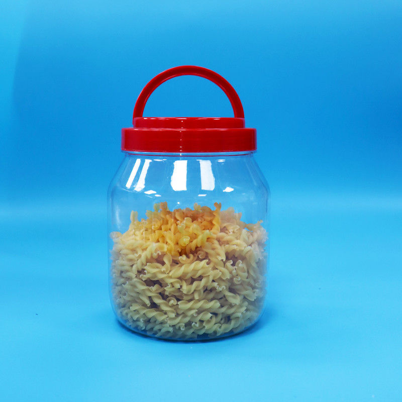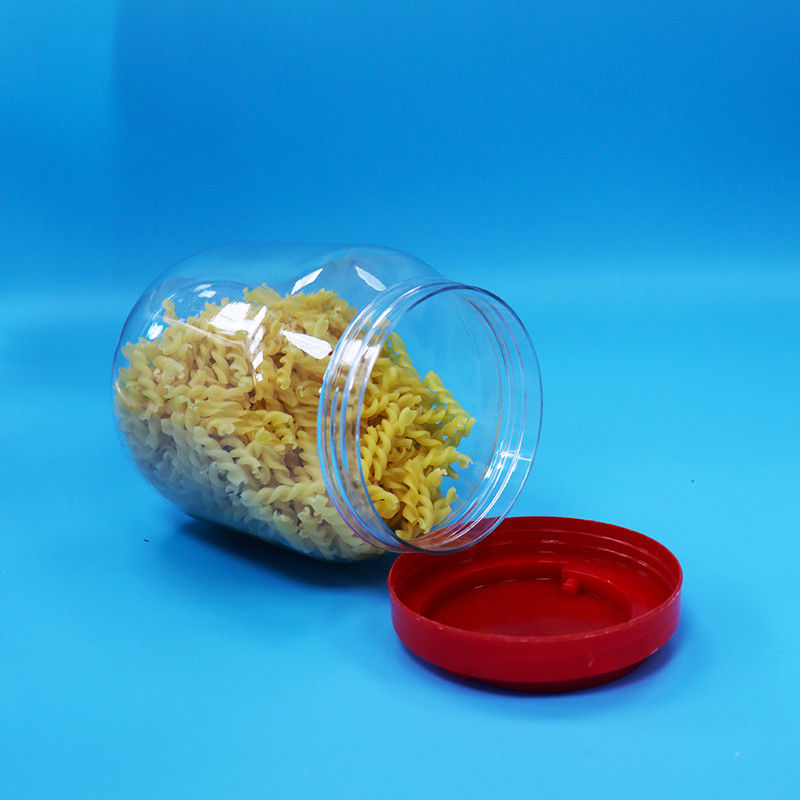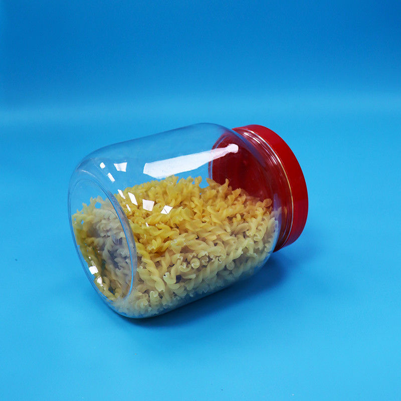 Caramelo galleta de boca ancha PET de grado alimenticio transparente cilindrico Jar tornillo tapa roja