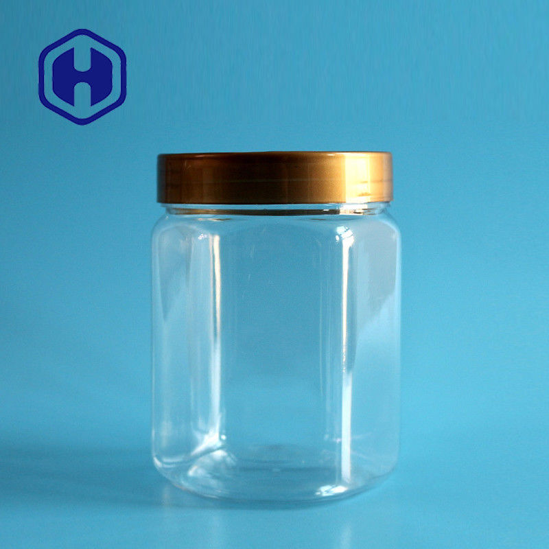 Información de producto: Éstos son los tarros plásticos transparentes del hexgon que después de que usted llenara los productos dulces del caramelo en los tarros, el sello del papel de aluminio necesitan la máquina de aislamiento sellar y la cuña piezosensible tiene no máquina, apenas puestos en el top y cierran la tapa del tornillo. Suministramos la máquina del lacre del partido para los clientes también si necesidad. Ofrecemos que los tarros plásticos transparentes del hexgon que podrían guardar productos de la mantequilla del chocolate también, y estos tarros plásticos transparentes del hexgon son prueba del escape y 100% hermético.