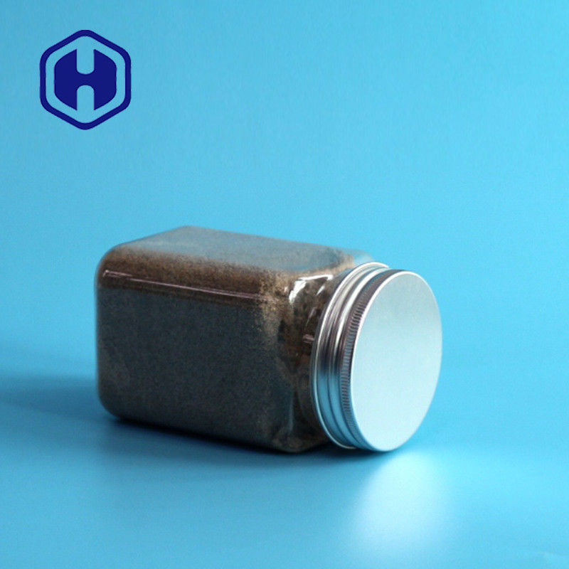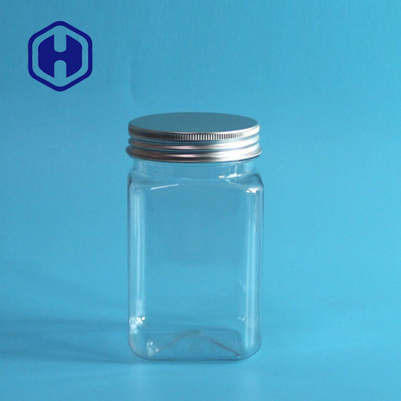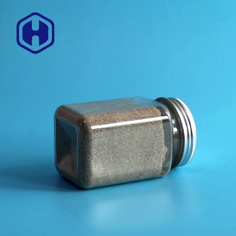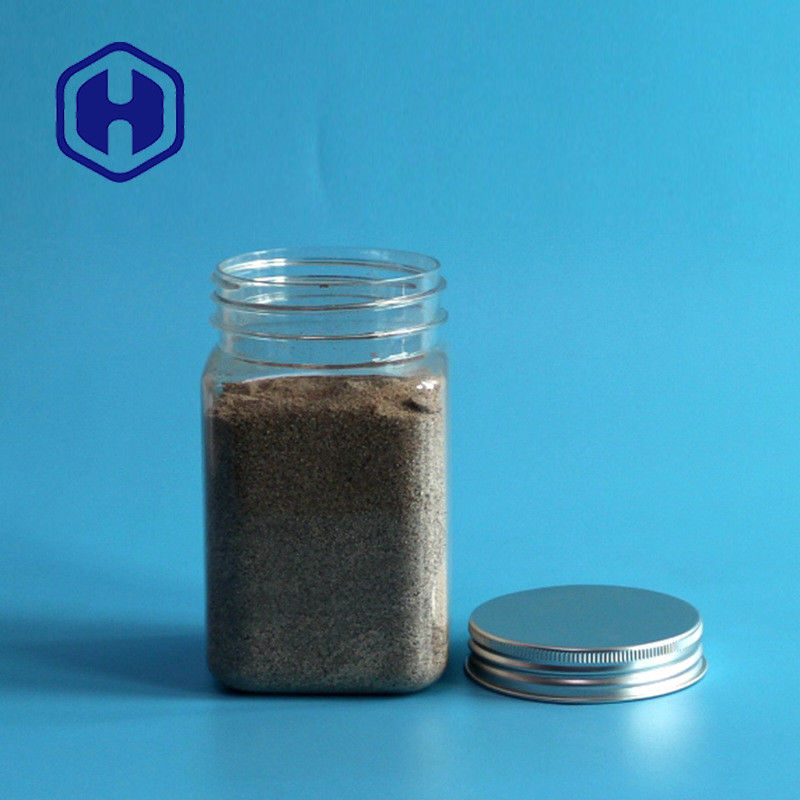 Tarro plástico de la comida de la boca de la especia del bocado 375ml del ANIMAL DOMÉSTICO vacío ancho del cuadrado con el casquillo de aluminio