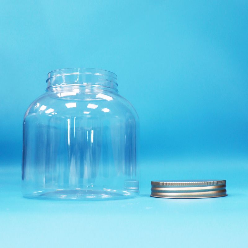 1Jarrones redondos de plástico con tapas de aluminio - con opciones de doble sellado