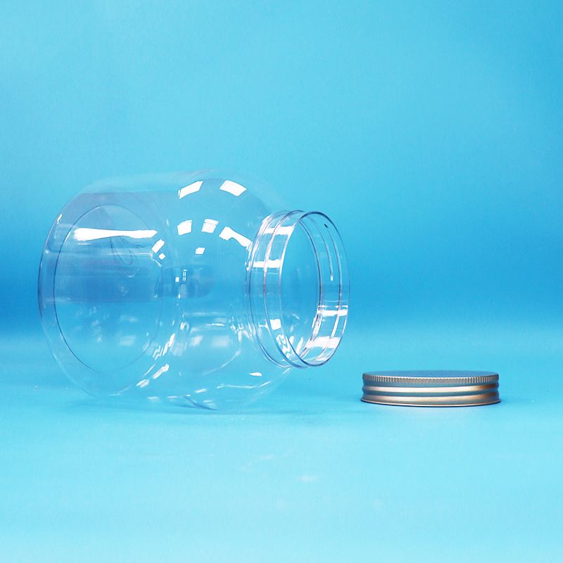 Envases de plástico PET transparentes ecológicos, caramelos redondos, envases de comida diaria, tapas de aluminio con tornillo