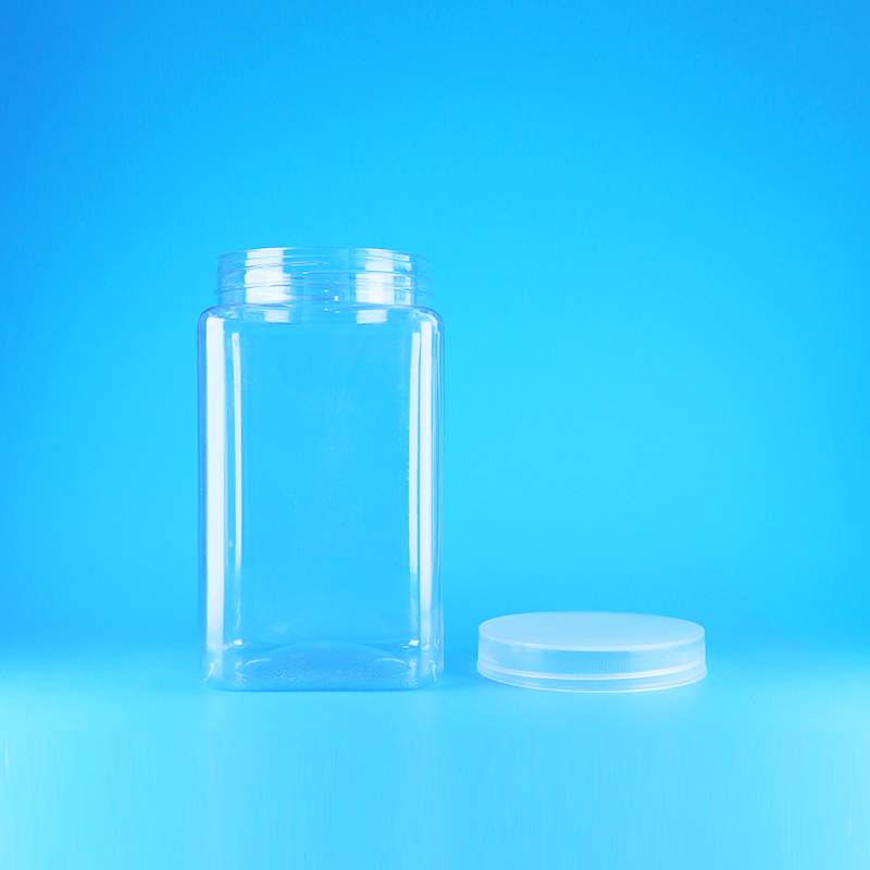Wide Mouth Clear PET Square Food Grade Plastic Containers Aluminum Screw On Lids