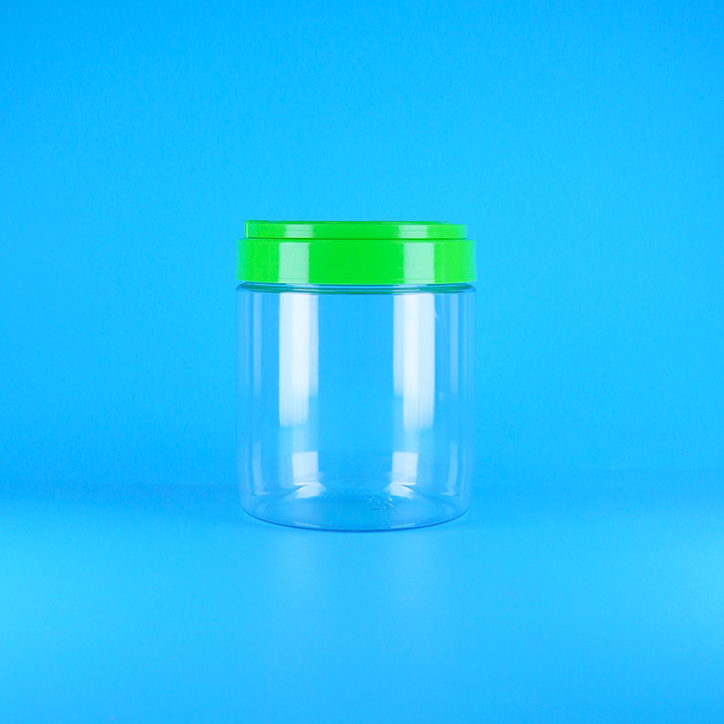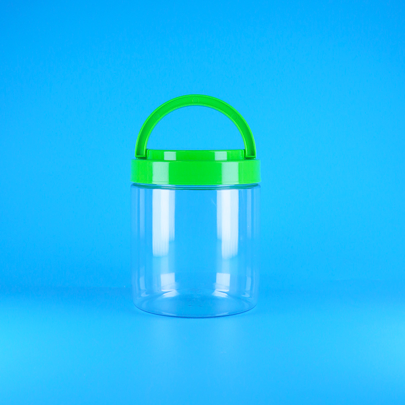 Tarro redondo transparente de plástico PET sellable de grado alimenticio con tapa de rosca y asa