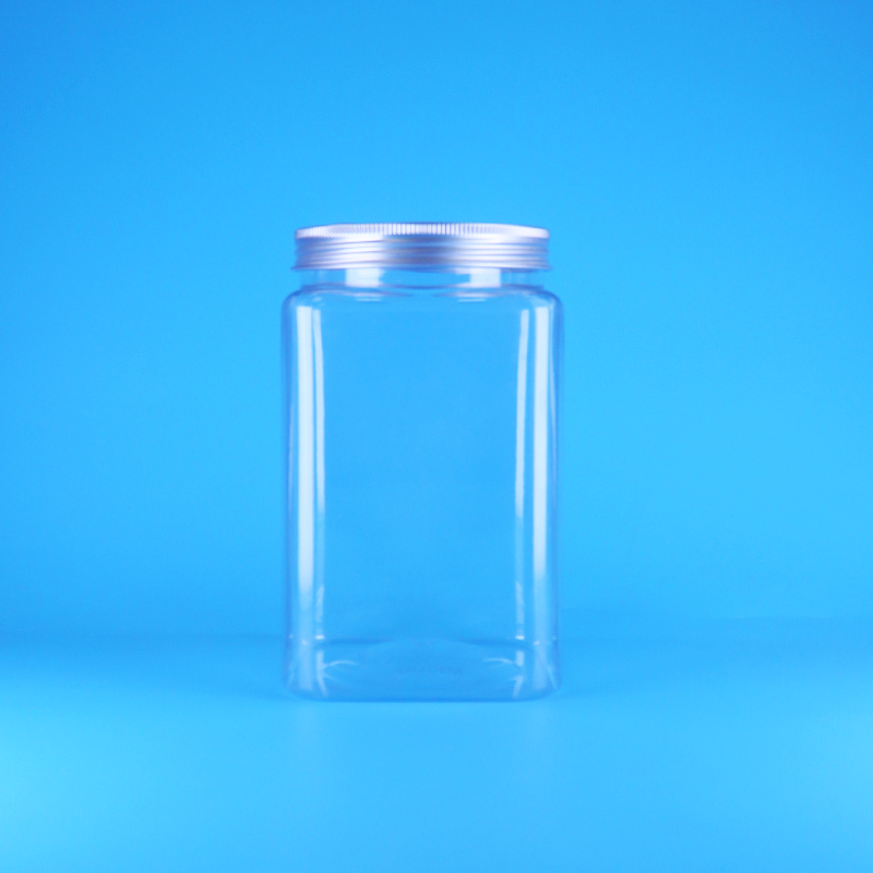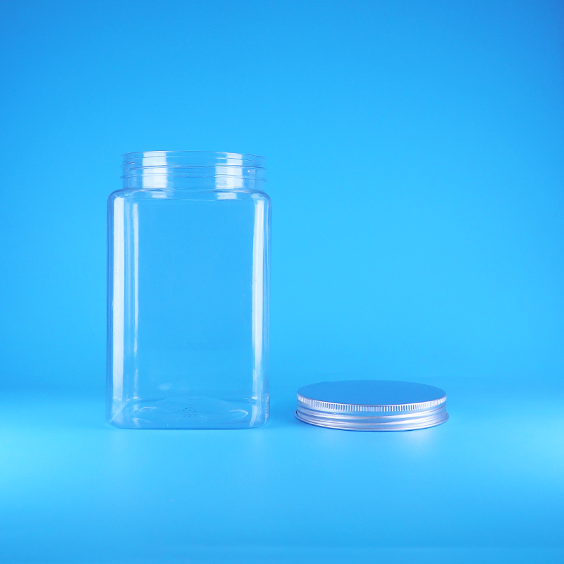 Frascos de plástico PET cuadrados vacíos y transparentes baratos de China, tarros de caramelos a granel con tapa de rosca de aluminio